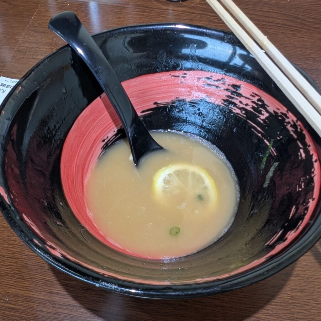 カウンター中心のレイアウトは一人ラーメンにも最適で、女性一人でも気兼ねなく入れる雰囲気がありました🤗。レモン入りでスッキリとした味は絶対女性が好みのだと思います🫶🏻