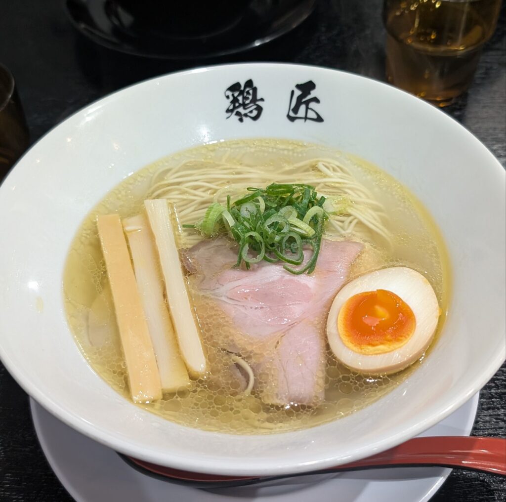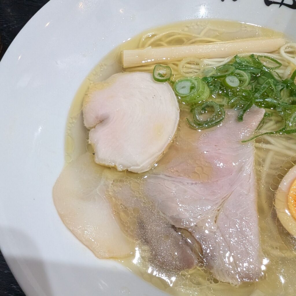今回注文したのは、お店の看板メニューの一つ「丸鶏塩そば」。丼を見た瞬間、その美しさに目を奪われます👀✨