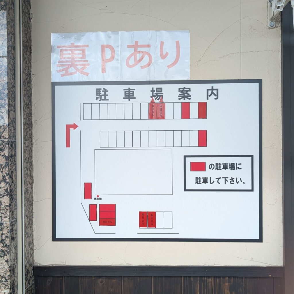 お店入り口横の駐車場案内
