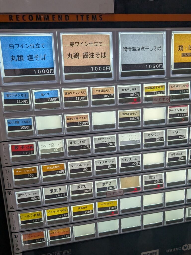 入店すると、まず目に入るのが最新式の券売機。「RECOMMEND ITEMS」と書かれたおすすめメニューがずらり👀✨